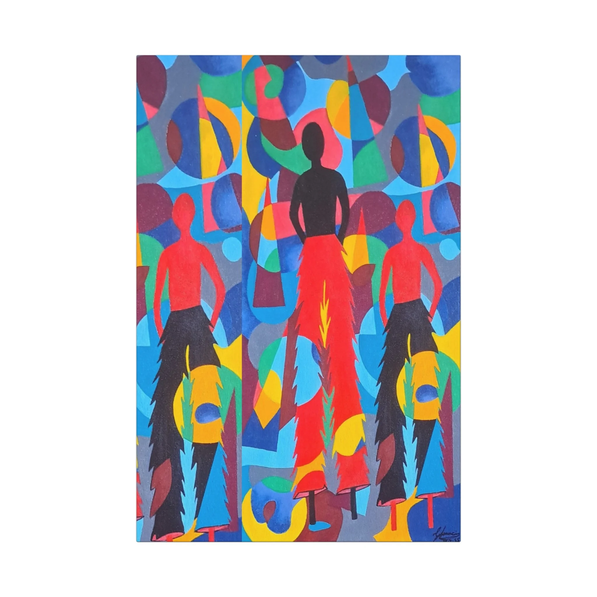 Trini Cubism Moko Jumbie, Vibrant Canvas Art Wraps, Colorful Wall Decor, Abstract Art for Home, Unique Gift for Art Lovers, Modern Home Decoration