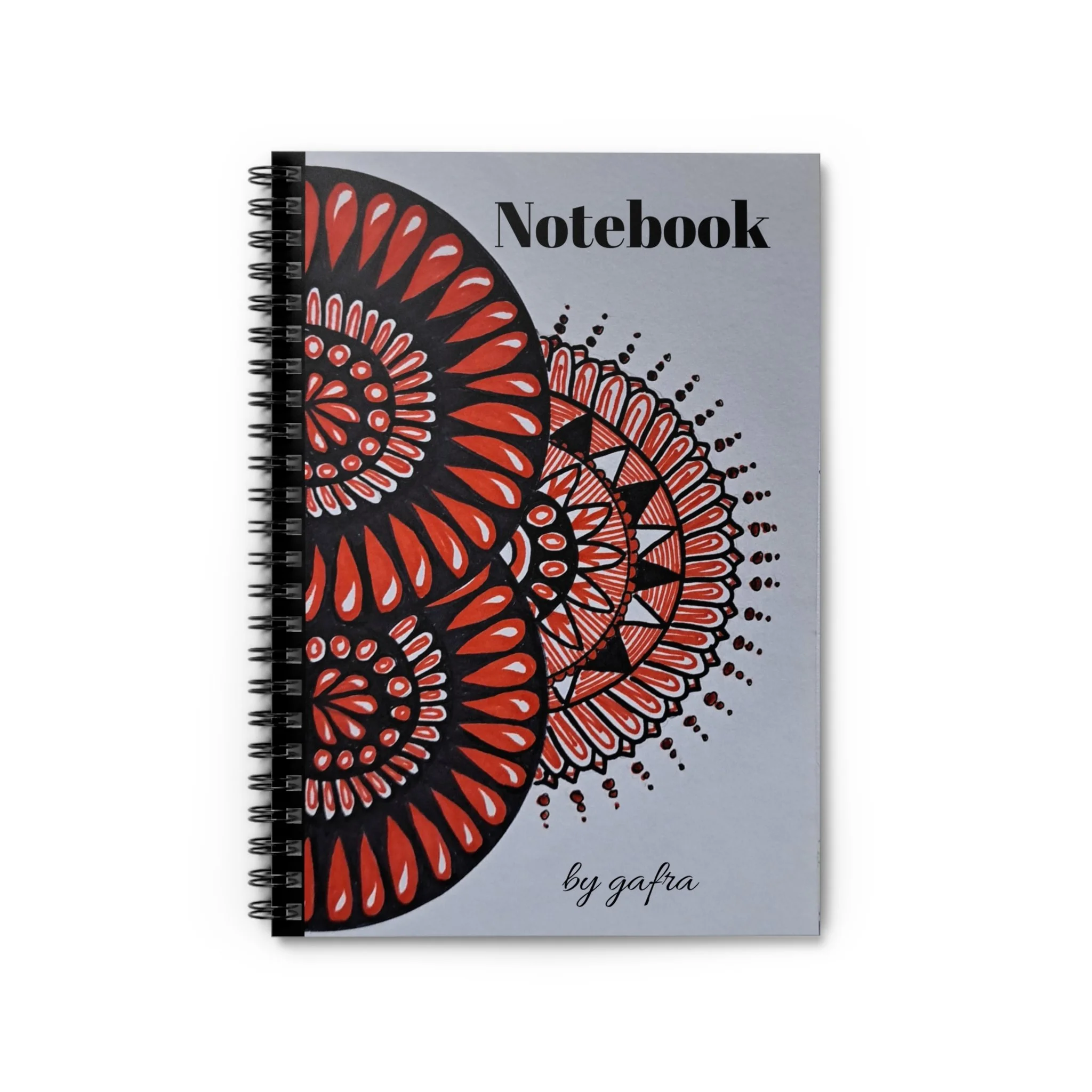 Red Mandala Spiral Notebook — Red Doodle Ruled Journal