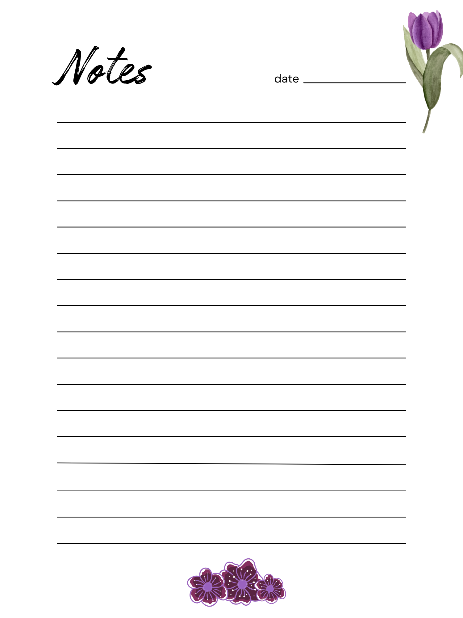 Purple Tulip Notebook that is downloadable and Printable. Simple purchase, download and print. Place the printed pages in your binder or keep them loose. Its your choice and you can print as many pages as you require.